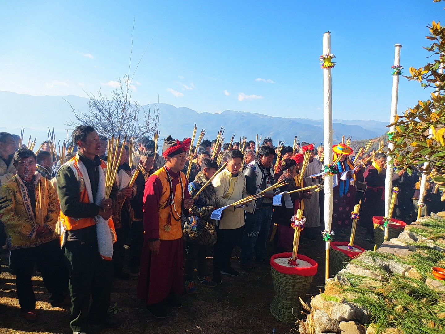 據古老的東巴經《崇搬圖》(創世紀)記載,在宇宙混沌萬物還沒有產生的時候,上方傳來一個美妙的聲音,下方冒出一個白氣,聲音和氣結合產生了天和地。